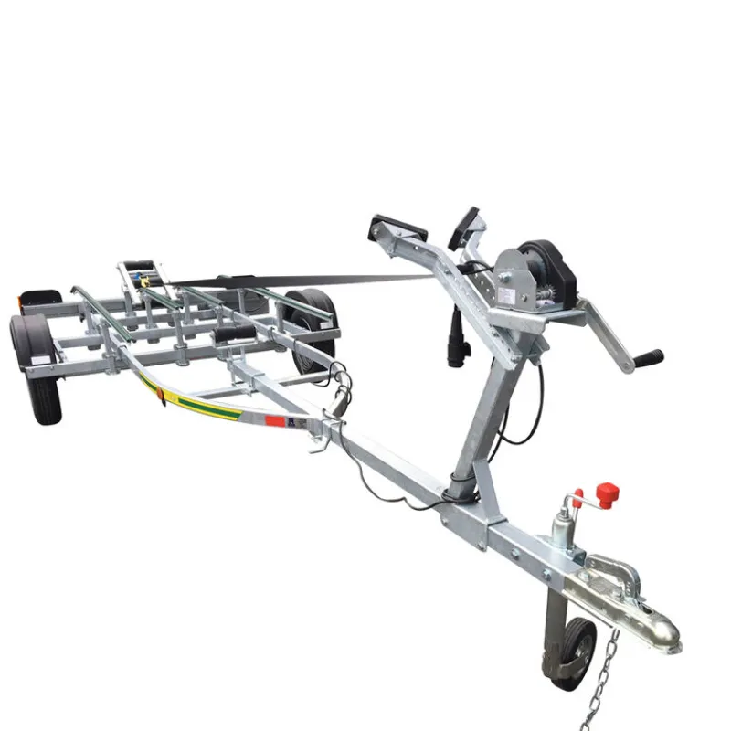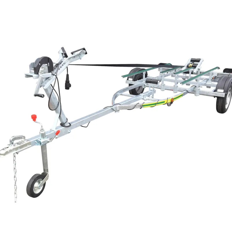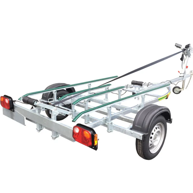 Remorque pouvant accueillir un bateau jusqu’à 4m50 et 350kg. Equipé de grandes roues en taille 13 pouces elle vous permettra de prendre la route sur de longs trajets avec une garantie de sécurité.
