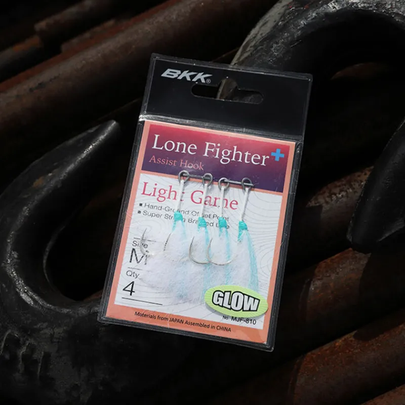 Assist light simple avec hameçon HG ( affûtage à la main) monté sur tresse renforcée avec ligature phosphorescente sur teaser et anneau soudé Inox.