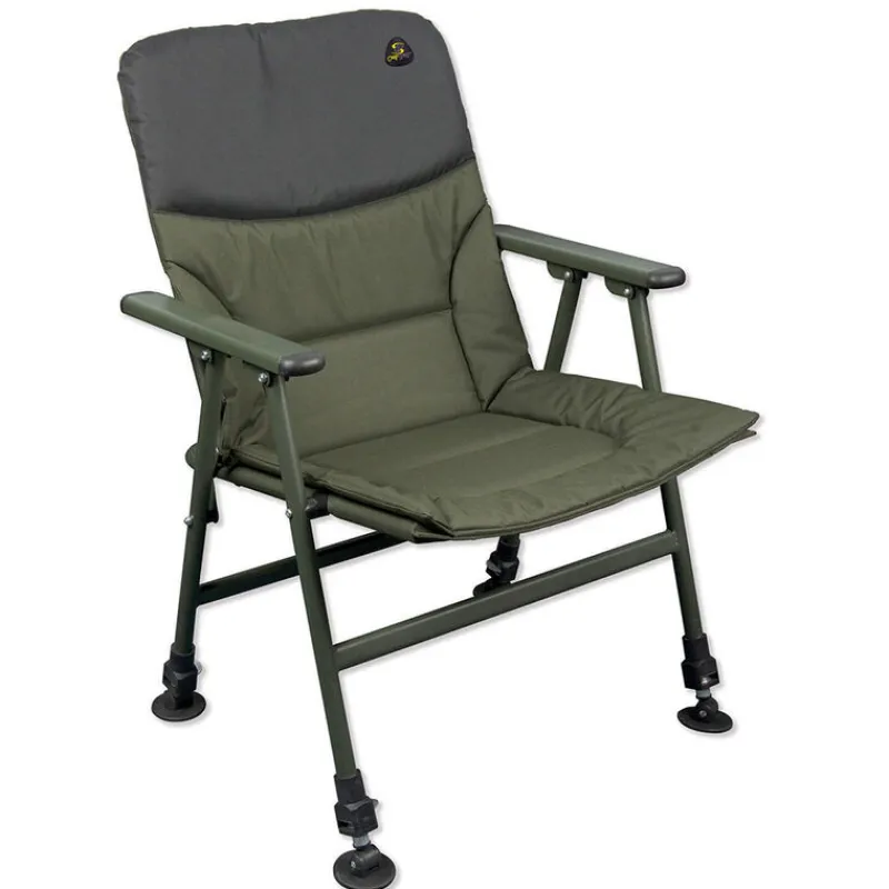 Grâce à ses accoudoirs intégrés et son design ergonomique, ce level chair combine confort et praticité, idéal pour accompagner vos longues sessions de pêche ou vos moments de détente en plein air.