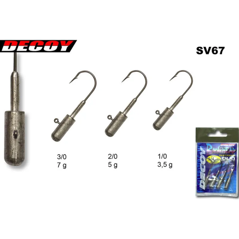 Les têtes SV67 sont profilées et allongées sur plus de la moitié du corps de l’hameçon. Ce profil cylindrique permet une bonne répartition du poids dans le corps du leurre et produit des descentes lentes et contrôlées.