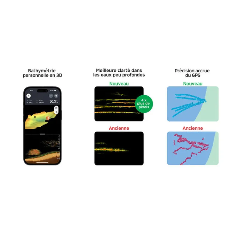 Avec une séparation ultra-précise des cibles de 1 cm, CHIRP+ 3 vous permet de distinguer les plus petits poissons des structures ou des nuages d’appâts. Parfait pour repérer les cibles et maximiser l’efficacité de vos prises.