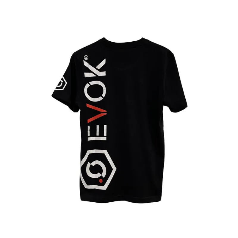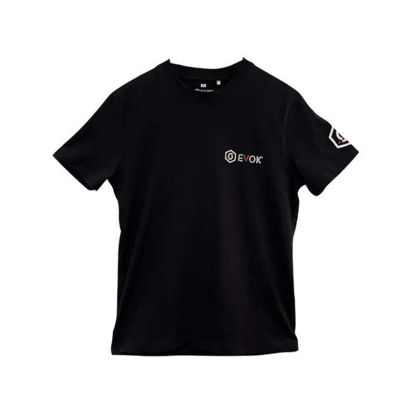 T-shirt noir simple comportant le logo de la marque sur la face avant du t-shirt.