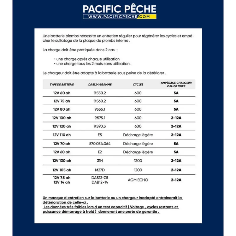 Type de batterie DAB12-14GAMME Cycles Ampérage chargeur obligatoire