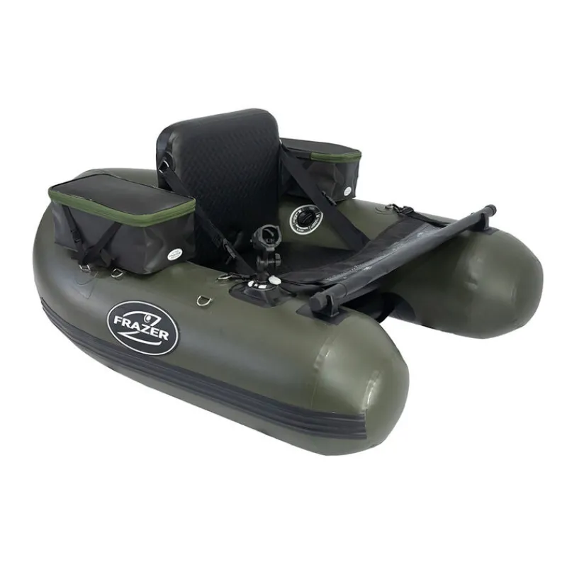 Le Frazer Ranger Evo 150 reprend les lignes et l’élégance du Ranger Evo 170 dans un format plus compact et épuré, idéal pour les plans d’eau restreints (rivières, étangs) ou les pêcheurs soucieux d’acquérir une embarcation légère. Avec ses 1,50 m de long pour 1,20 m de large (45 cm de largeur interne) et ses tubes de 30 cm de diamètre, il reste suffisamment stable tout en pesant seulement 7,5 kg. Construit en PVC de 0,7 mm et doté d’une bande « rubber » anti-abrasion sous la coque et sur les flancs, il vous garantit robustesse et longévité, sans sacrifier le confort : sa forme en V et la réhausse du siège drop-stitch vous maintiennent parfaitement au-dessus de l’eau.