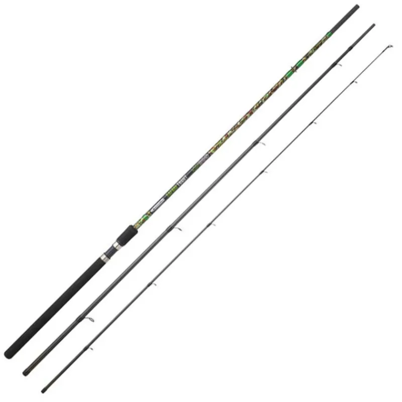 La poignée en EVA haute densité intègre un porte moulinet tubulaire capable de recevoir un moulinet spinning en taille 1000 à 4000. Les anneaux en Oxyde d’Alumine sont à grande circulation, pour permettre par exemple de laisser passer des nœuds d’arrêt lors de l’utilisation de flotteur coulissant. L’assemblage des 3 brins par des emmanchements inversé est gage de solidité dans le temps. Ce type d’emmanchement ne prend pas de jeu et n’est pas soumis à une usure prononcée.