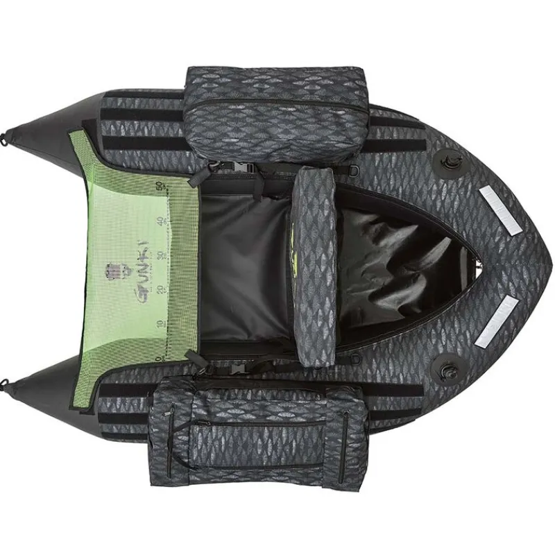 Sa forme en ‘V’ « hydroglisse », son assise très confortable et sa grande flottabilité facilitent grandement les déplacements sur l’eau. Particulièrement stable, il permet d’ accéder rapidement aux meilleurs zones de pêches. Il est d’une manœuvrabilité extrême ce qui assure des approches précises et discrètes. Grande capacité de chargement. Coloris « Camo Fish » pour une parfaite discrétion. Bandes réfléchissantes de sécurité amovibles (Velcro).