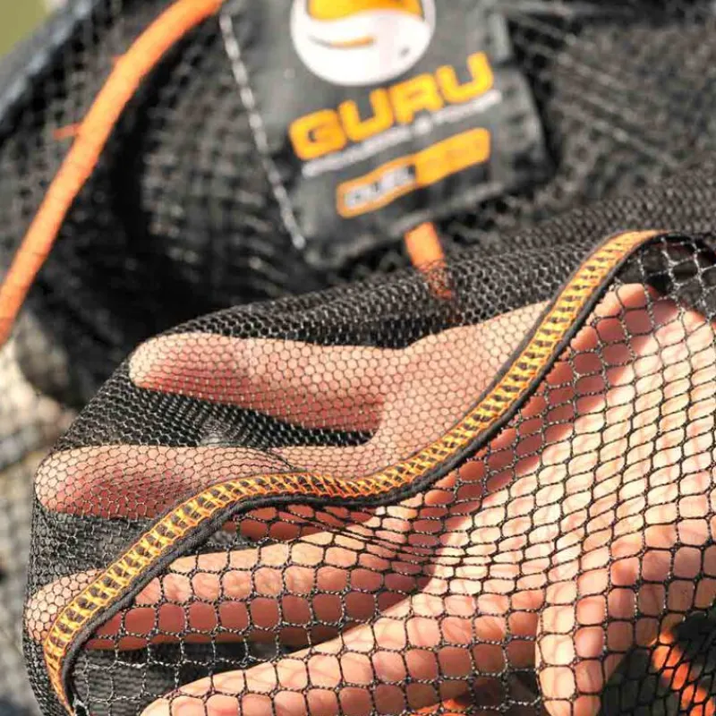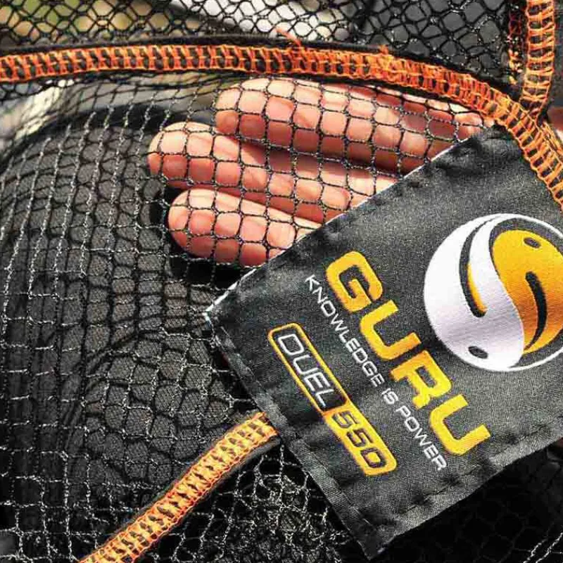 La nouvelle tête d’épuisette GURU DUAL 550 est construite autour d’une armature très solide en aluminium. Cette version avec une double maille de 6 mm sur les côtés et de 2 mm au fond est la plus grande de la gamme. D’un diamètre de 55 cm, le modèle DUAL 550 est particulièrement adapté à la pêche des gros spécimens en carpodrome.
