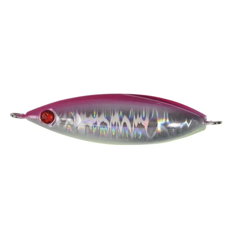 Jig dodu et asymétrique aux couleurs vives et holographiques, idéal à la fois pour pêche a la verticale et lancer.