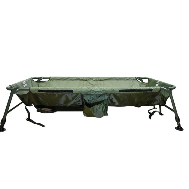 Une toile de sécurité attachable vient compléter l’ensemble. Elle permet de maintenir le poisson en toute sécurité le temps de préparer votre appareil photo ou de remplir un seau d’eau pour le rafraîchir. Les côtés du cradle sont munis de grilles de drainage, permettant une évacuation rapide de l’eau et évitant toute stagnation.
