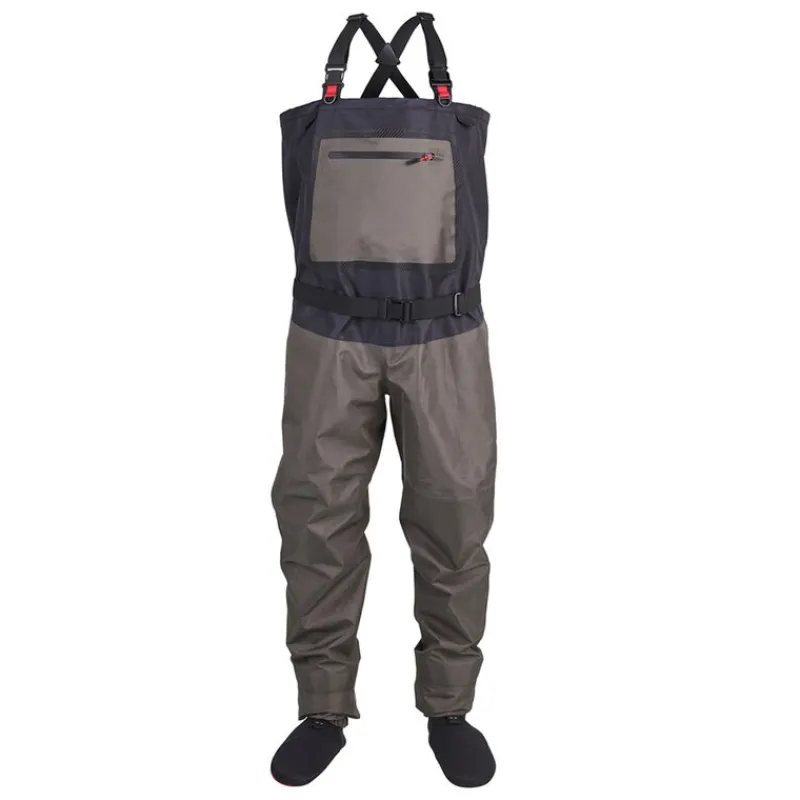 Ce wader est également équipé d’une grande poche ventrale zippée ainsi que de suspenseurs permettant de fixer et organiser ses accessoires. Les chaussons en néoprène bi-densité de 4 mm offrent une isolation thermique efficace. Une ceinture de wading est incluse pour un ajustement optimal, et les bretelles élastiques réglables permettent d’adapter le wader à votre morphologie pour un confort personnalisé.
