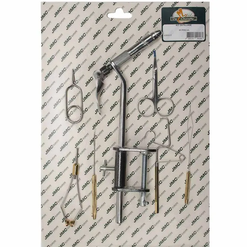 Ce kit d’outils de montage de mouche comprend un étau super AA et les outils de base pour débuter dans le montage de mouches.