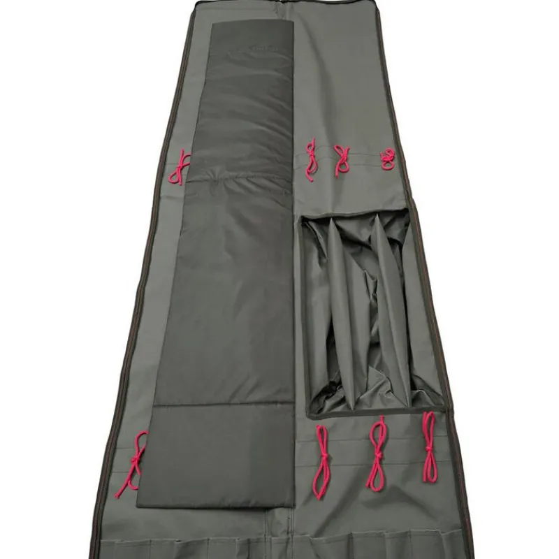 Ce fourreau haut de gamme peut accueillir jusqu’à six cannes : trois montées avec moulinets et trois sans moulinets. L’intérieur est parfaitement rembourré et équipé d’une cloison matelassée pour éviter tout contact entre les cannes, assurant ainsi une protection maximale pendant le transport.