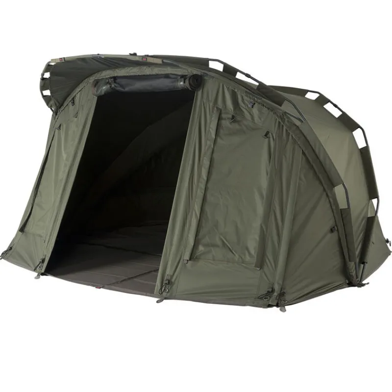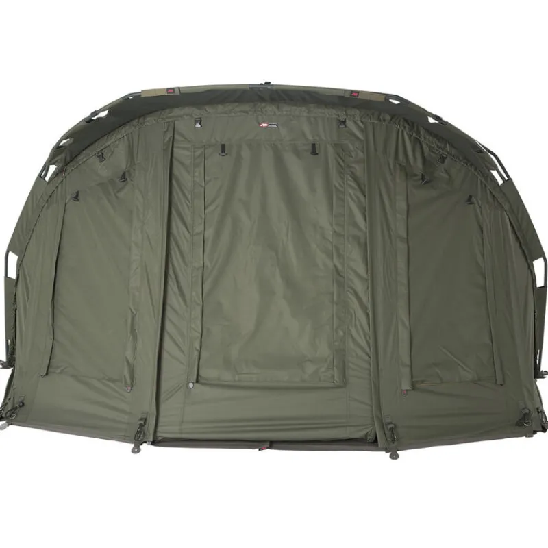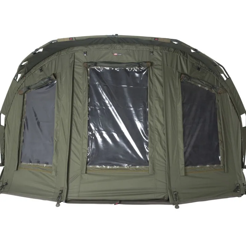La partie arrière du biwy jrc extreme tx est équipée de 2 larges volets qui contribuent à faire circuler l’air à l’intérieur de l’abri lors des chaudes journées estivales.