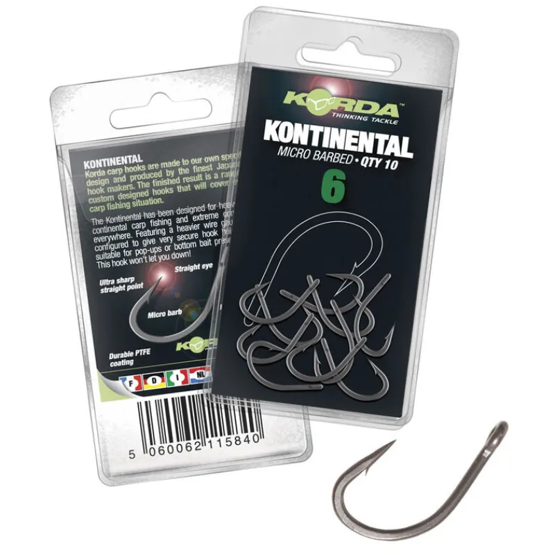 L’hameçon Kontinental a été mis au point pour les situations de pêche exigeantes dans les endroits encombrés et les conditions extrêmes en Angleterre et ailleurs. Il présente un métal de fort diamètre et une forme dessinée pour permettre un ancrage solide. Il peut être utilisé pour la présentation de pop-ups ou d’appâts denses. Il est disponible en six tailles, du n°2 au n°10, avec ardillon seulement.