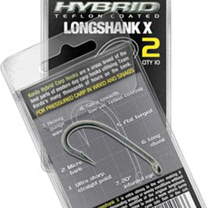 Le Korda Long Shank X est un hameçon issu des formes historiques qui ont fait la réputation de la pêche à la carpe, inspiré des anciens modèles de mouches utilisés pour leur efficacité au piquage. Korda reprend ce design légendaire avec une version plus solide, plus résistante et plus piquante, parfaitement adaptée aux montages modernes.