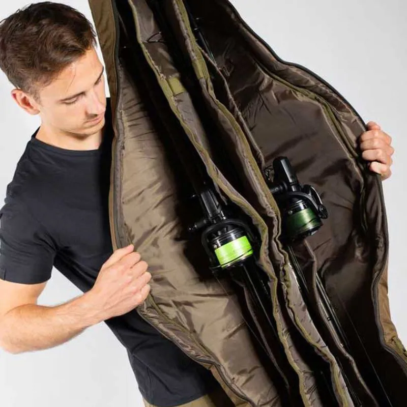Trois poches extérieures le long du fourreau donnent une certaine rigidité au tout et offrent un espace de rangement pour les épuisettes et autres piques ou mats tempête.