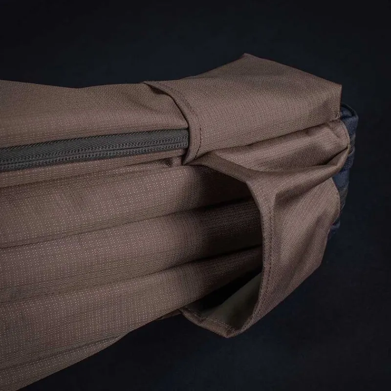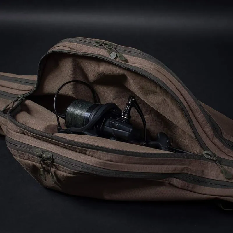L’extérieur du fourreau est équipé de sangles et de poches pour fixer une épuisette et des piques, ainsi que d’une poche zippée dédiée au rangement des plombs. Pour un transport confortable, il dispose d’une sangle d’épaule rembourrée et amovible.