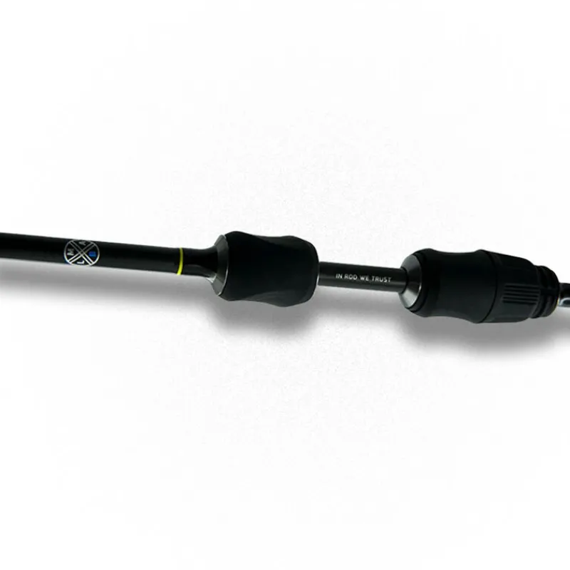 La poignée split moderne en EVA haut de gamme est non seulement esthétique, mais aussi extrêmement confortable en main. Le porte-moulinet assure un contact direct avec le blank, garantissant ainsi une sensibilité et un retour d’information optimaux.