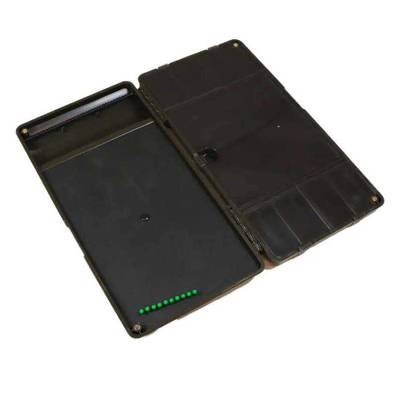 Elle se ferme à l’aide d’aimants et dispose d’une plaque pour fiwer des bas de ligne ainsi que de 8 compartiments de taille moyenne et un grand compartiment qui se ferme. Vous apportant une grande organisation dans votre boite.