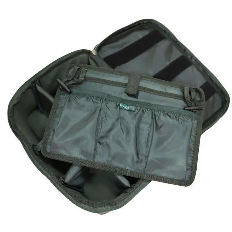 Il dispose également d’une planche fixé par scratch dans le sac que vous pouvez détacher pour la fixé par élastique sur le bed chair afin de pouvoir avoir à disposition sur le bed chair votre powerbank et le cable pour charger votre téléphone par exemple.