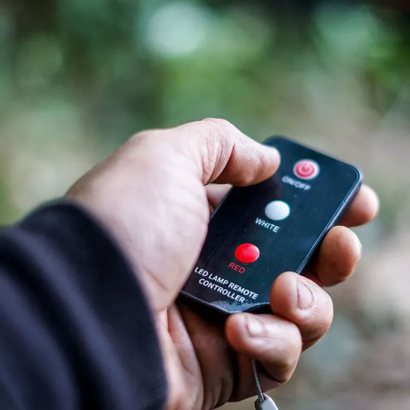 Equipée d’un éclairage à la luminosité réglable (sur 2 niveaux) vous pourrez ainsi adapter l’intensité d’éclairage en fonction de vos besoins. De plus, cette lampe dispose de deux couleurs de lumière (rouge & blanc) afin d’offrir une grande visibilité ou d’être plus discret. Afin d’allumer ou éteindre cette lampe de biwy, elle est munie d’un bouton poussoir. De plus, cette version IR est équipée d’une télécommande à infrarouge vous permettant ainsi de pouvoir la régler ou l’allumer à distance. Très pratique, vous pourrez ainsi rester dans votre bedchair afin de l’éteindre ou l’allumer sans pour autant devoir en sortir.
