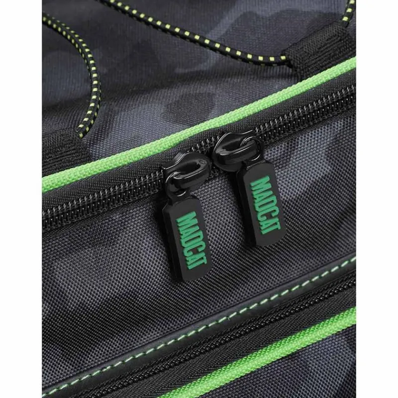 Le sac de transport MADCAT allie praticité et élégance pour devenir votre bagage de pêche préféré. Grâce à sa bandoulière confortable, il est facile à transporter même lors de longues sessions de pêche. Ce sac spacieux peut contenir jusqu’à trois boîtes de pêche étanches MADCAT, garantissant une organisation optimale pour tous vos accessoires de pêche. Avec un compartiment principal de 18 litres, il offre un grand espace de rangement, et ses trois poches extérieures vous permettent de garder vos objets essentiels à portée de main. Fabriqué en 100% polyester, ce sac est robuste et durable, avec une base imperméable pour protéger votre matériel des intempéries.