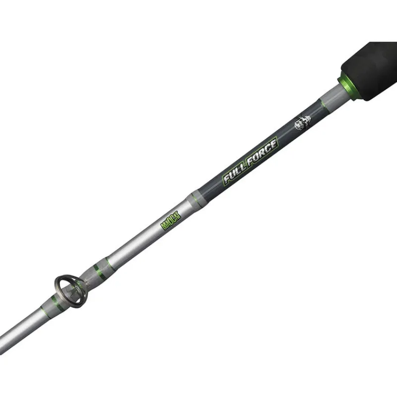 La MadCat Full Force Vertical 185 BC est une canne conçue pour les pêches extrêmes du silure. Avec une force de levage de plus de 18 kg, elle offre une puissance brute inégalée tout en restant légère et parfaitement équilibrée. Son blank en carbone massif 30TC garantit une robustesse exceptionnelle, faisant d’elle une canne pratiquement indestructible. Équipée d’un porte-moulinet à gâchette Fuji TCS et de guides SeaGuide®, elle est idéale pour le jigging vertical avec un moulinet baitcasting comme le MADCAT Full Force.