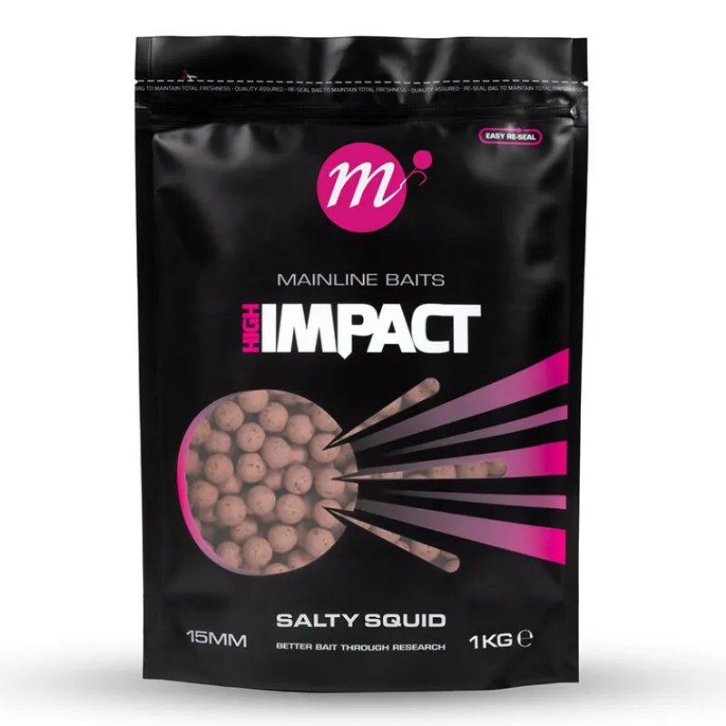 Les Mainline Hi Impact Salty Squid font partie de la prestigieuse gamme High Impact, développée pour offrir aux carpistes une bouillette food source complète, capable de performer aussi bien en pêche rapide qu’en amorçage durable sur des poissons éduqués.