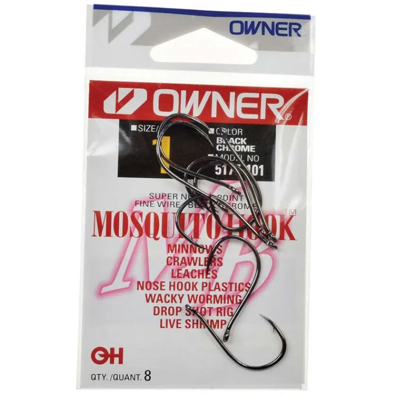 Hameçons chromés noir qui, bien que fin de fer, offrent une grande résistance.