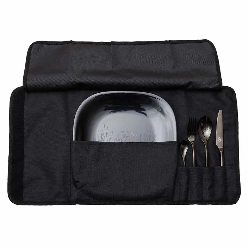 Une pochette de couvert prologic pour vous permettre de manger dans de bonne condition au bord de l’eau avec un assiette, un couteau, une fourchette, une cuillère à soupe et une cuillère à café