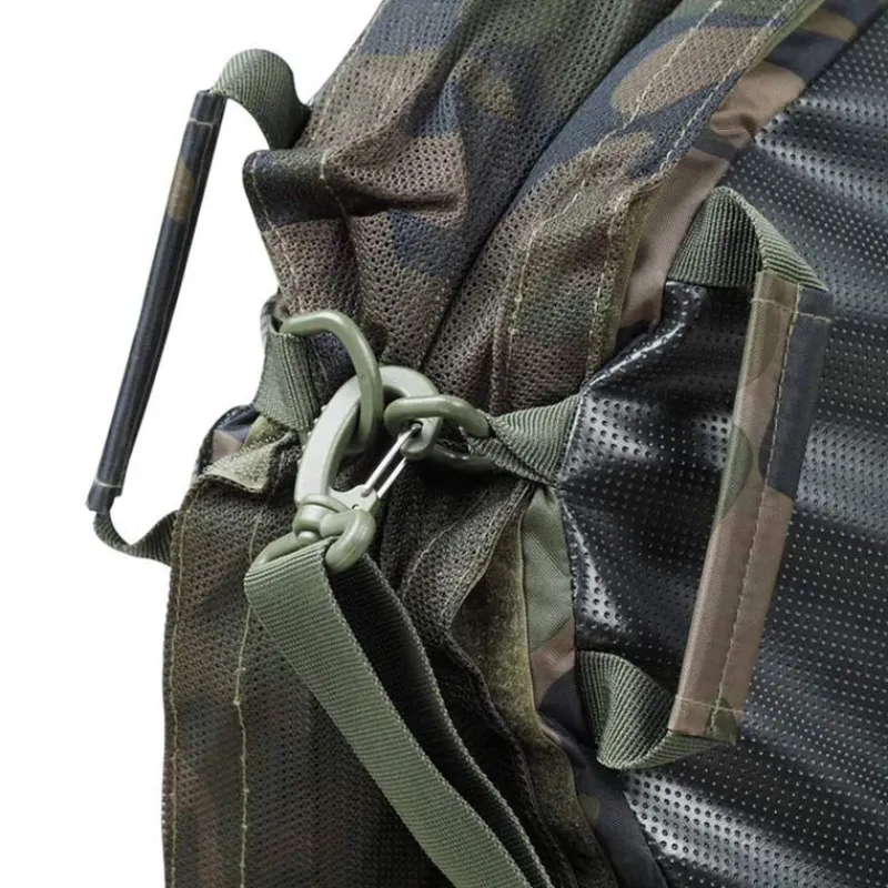 Sa base en PVC extrêmement robuste et durable résiste sans effort à tous les types de terrains, même les plus abrasifs. Le tapis est équipé d’un couvercle de retenue en mesh CAMO fish-safe, respirant, solide et idéal pour calmer le poisson en réduisant la lumière. Celui-ci se ferme par un large Velcro renforcé.