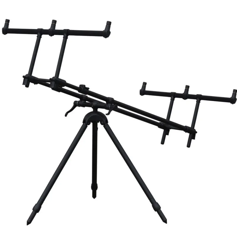 La double barre centrale est réglable afin de s’adapter facilement à toutes les longueurs de cannes. De plus, cette double barre pourra être inclinée facilement afin de pouvoir pêcher aussi bien scion vers l’eau que vers le ciel. Très pratique, vous pourrez ainsi adapter facilement ce rod pod Prologic à chaque situation rencontrée.
