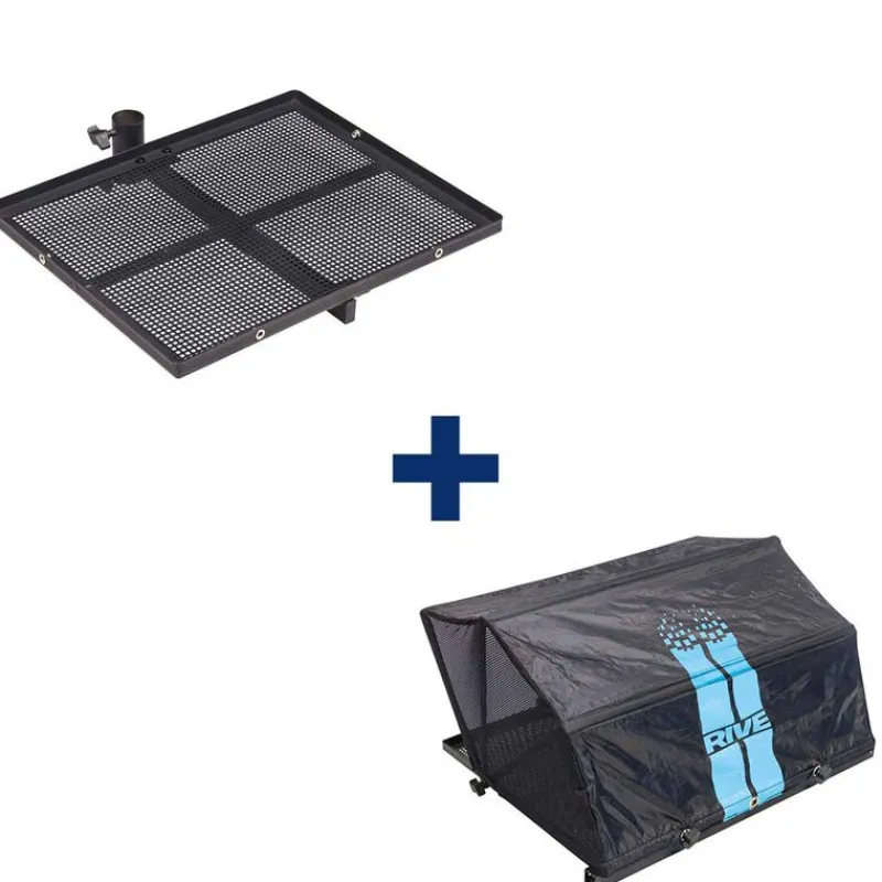 - Taraudage intégré pour fixer un store soit Aqua, soit Black sur nos dessertes rectangulaires pour protéger vos esches, amorces et pellets du soleil, du vent ou encore de la pluie.