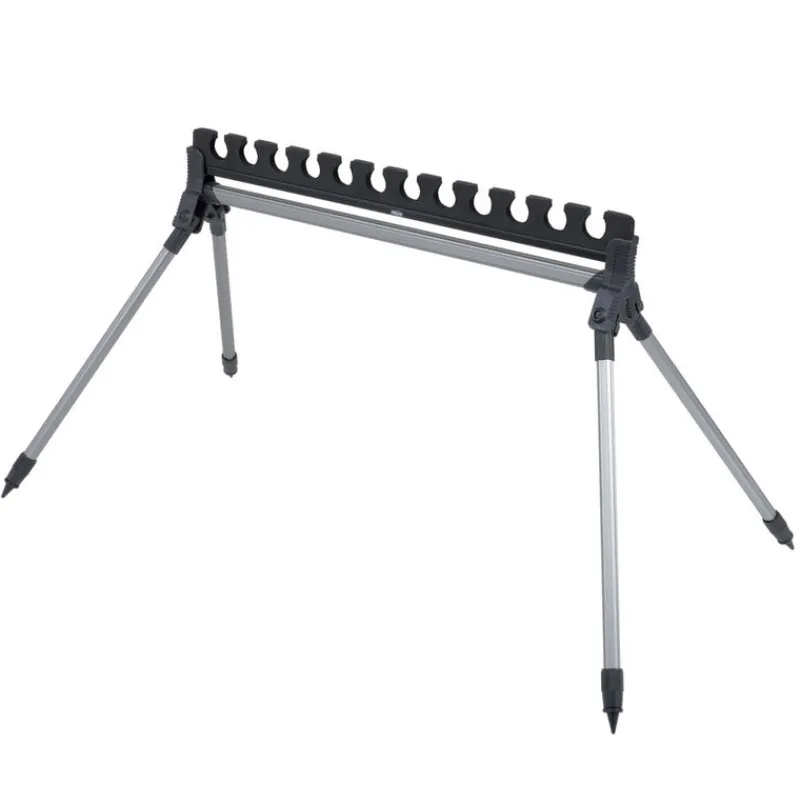Support kit Sensas pour 12 kits et 4 pieds télescopiques pour surélever les cannes pouvant s’adapter à n’importe quelle situation au bord de l’eau !