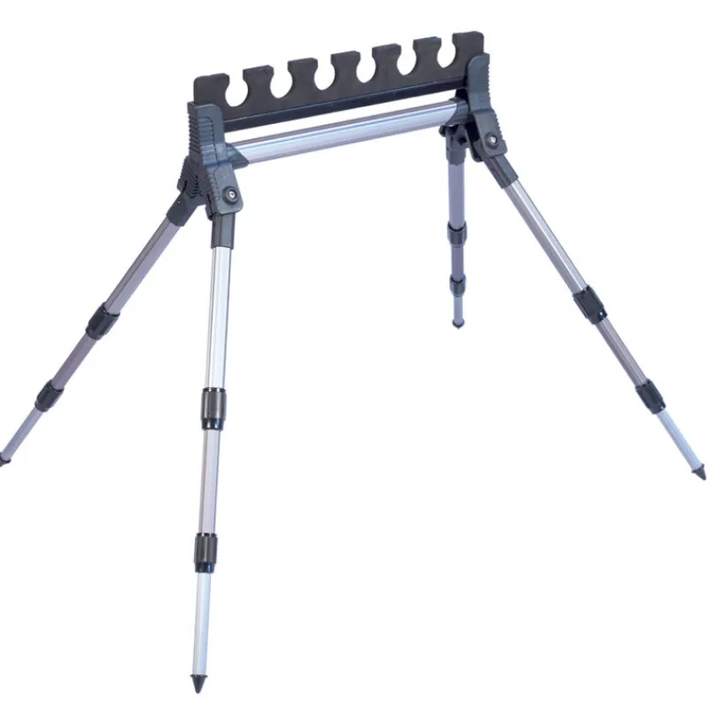 Support kit Sensas pour 6 kits et 4 pieds télescopiques pour surélever les cannes pouvant s’adapter à n’importe quelle situation au bord de l’eau !