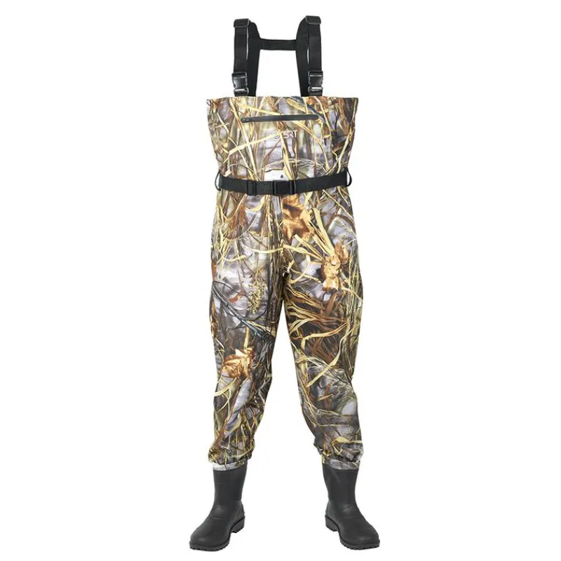 Les bretelles ajustables et la ceinture de wading avec passants garantissent un maintien optimal et un ajustement adapté à toutes les morphologies. Les bottes à semelles crantées offrent une accroche fiable sur terrains humides ou glissants.