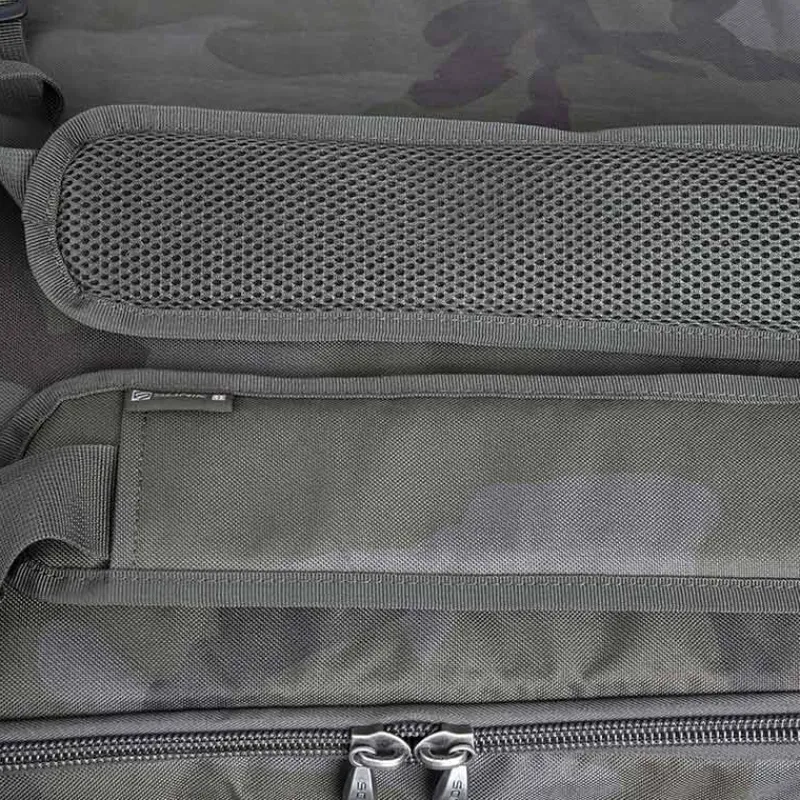 Le système se replie facilement pour un rangement compact et intègre 3 pochettes amovibles idéales pour organiser le tackle (parfaites à glisser sous le bedchair). Fabriqué en 600D Bank-Tek camo enduit PVC, avec une base 100% waterproof, il est solide, pratique et pensé pour durer.