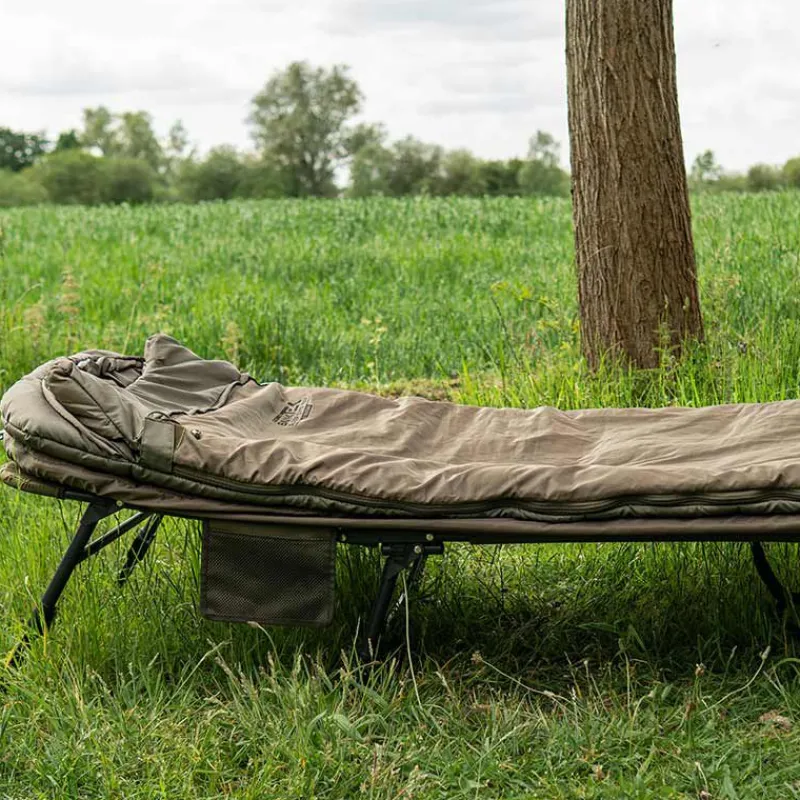 Le Bank-Tek 5 Season Sleep System Wide est la version large du sleep system Sonik, pensée pour les pêcheurs qui veulent plus d’espace sans compromis sur la chaleur. Il combine un sac de couchage 5 saisons ultra isolant et un bedchair wide 8 pieds à profil 100 % plat. Doublure micro-fleece, base polyester lisse et moustiquaire intégrée : tout est prévu pour dormir confortablement, même lors des longues sessions.