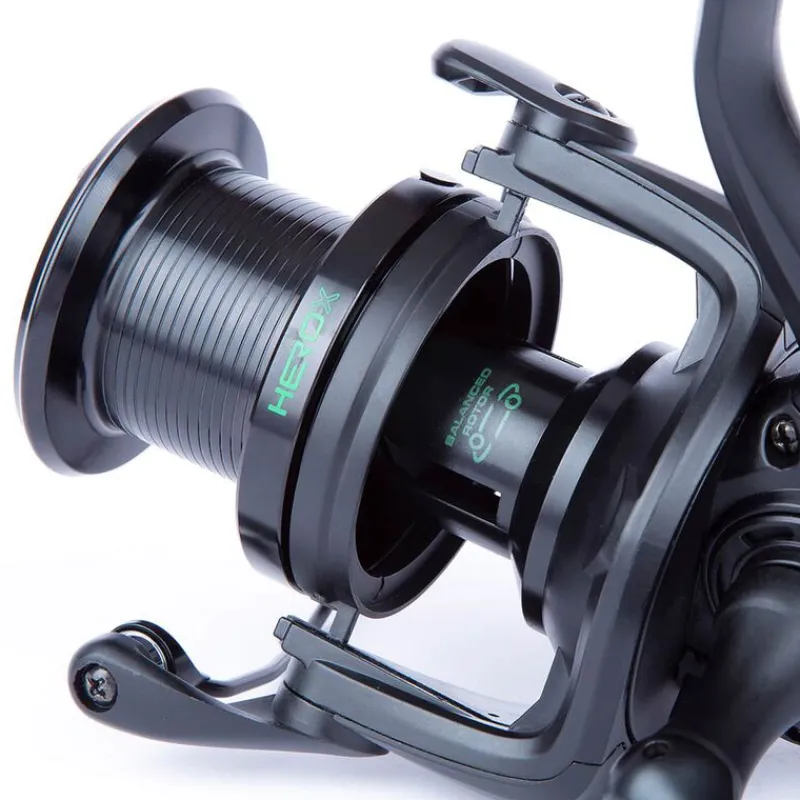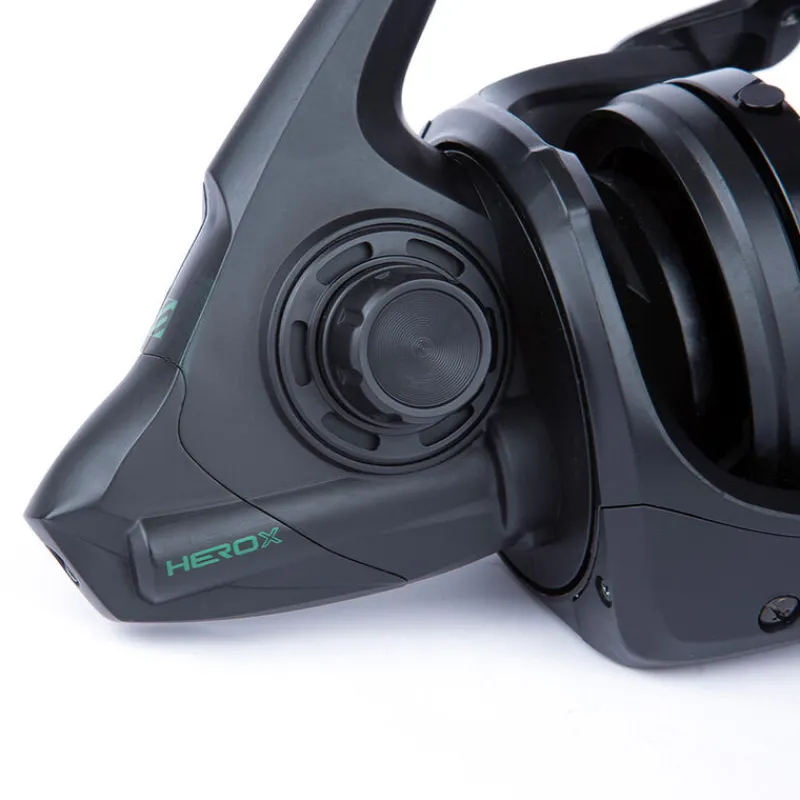 Le moulinet HERO-X allie style, robustesse et grande capacité pour répondre aux exigences des pêcheurs de carpe et des spécialistes. Conçu avec des matériaux de qualité et une transmission par vis sans fin ultra-fluide, il garantit des performances de lancer impeccables et une pose de ligne parfaite grâce à son système Heli Coil.