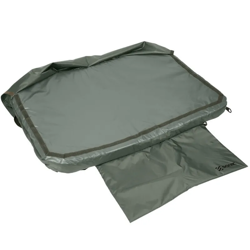 Le Sonik Xtractor Multi-Mat est un tapis de réception polyvalent et ultra sécurisant, conçu comme un véritable 3-en-1 : tapis de décrochage, sac de pesée et aide au retour du poisson. Son design flottant permet une récupération et un retour du poisson directement dans l’eau en toute sécurité, idéal pour les pêcheurs modernes et mobiles soucieux du bien-être des carpes.