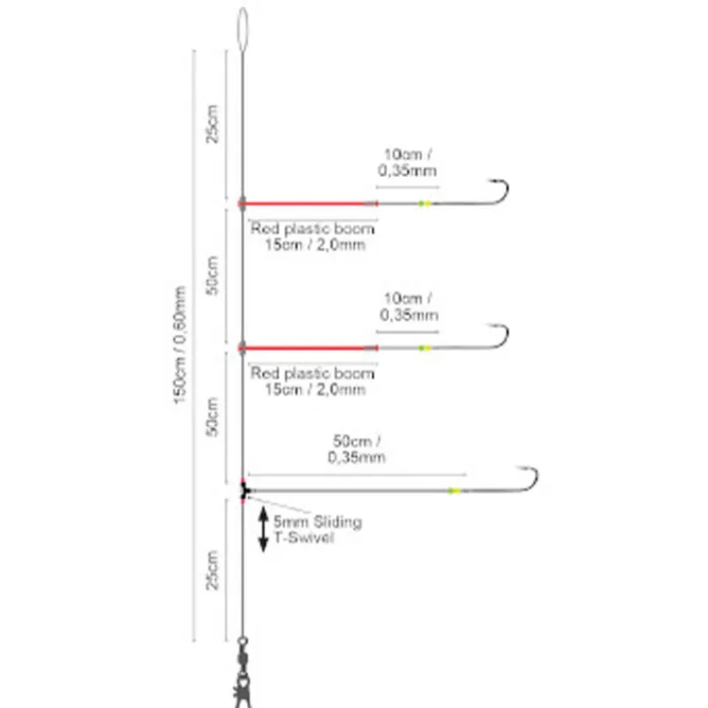 Ces paternosters de Spro sont très faciles à utiliser. Vous attachez la ligne à votre ligne principale, mettez votre appât sur les hameçons tranchants comme des rasoirs et vous êtes prêt à pêcher. Le bas de ligne est faite à la main à partir d’un fluorocarbone solide qui rend la ligne presque invisible sous l’eau. Les perles fluorescentes sur les lignes latérales rendent votre appât très attrayant et attirent rapidement l’attention des poissons. Les hameçons en plastique rouge garantissent que votre appât ne s’emmêle pas dans votre ligne. Vous pouvez utiliser ces bas de ligne pour pêcher depuis un bateau ou depuis le rivage.