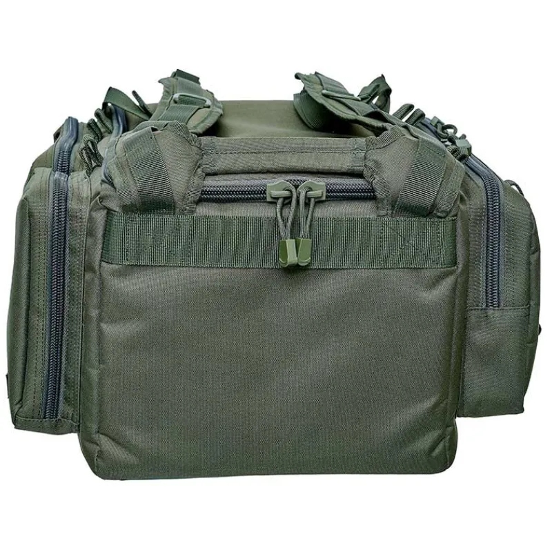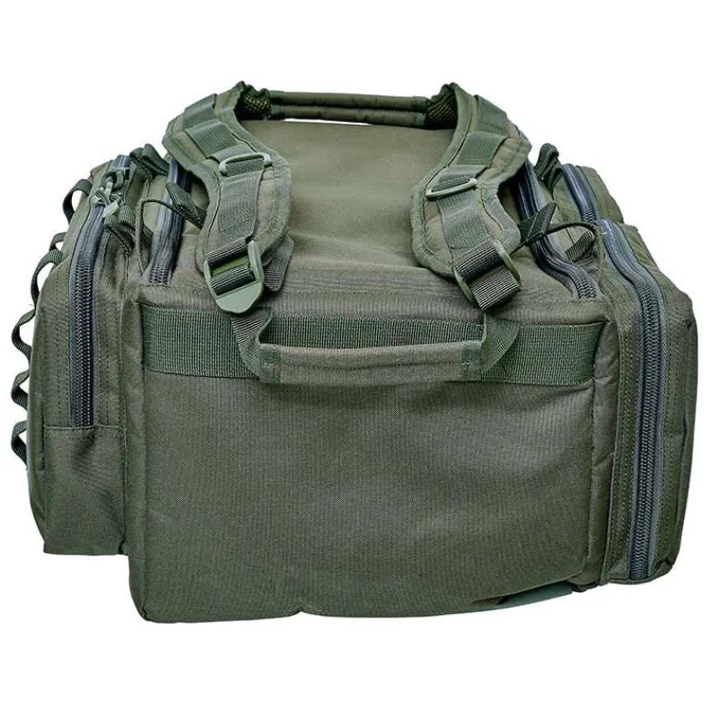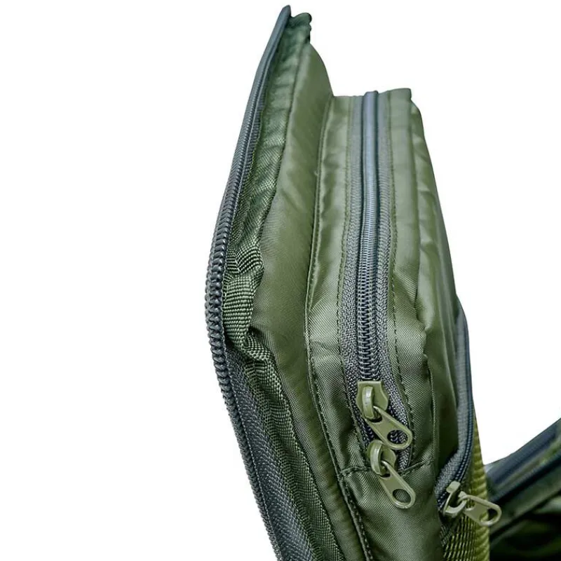 Le sac dispose de 3 poches extérieures matelassées avec fermetures éclair, idéales pour organiser vos accessoires, ainsi que de poches filets intérieures pour garder un rangement efficace. Un vrai atout : des passants élastiques permettent de transporter jusqu’à 9 piques équipées de leur détecteur ou repose-canne, parfait pour gagner du temps sur le poste. Enfin, la base imperméable, les bretelles entièrement réglables et les deux poignées renforcent le confort et la praticité au quotidien.
