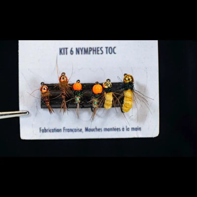 Ce kit de 6 nymphes est parfait pour pratiquer la « nymphe au toc ». Avec différents poids et différents modèles, ce kit permet de pêcher des postes variés.