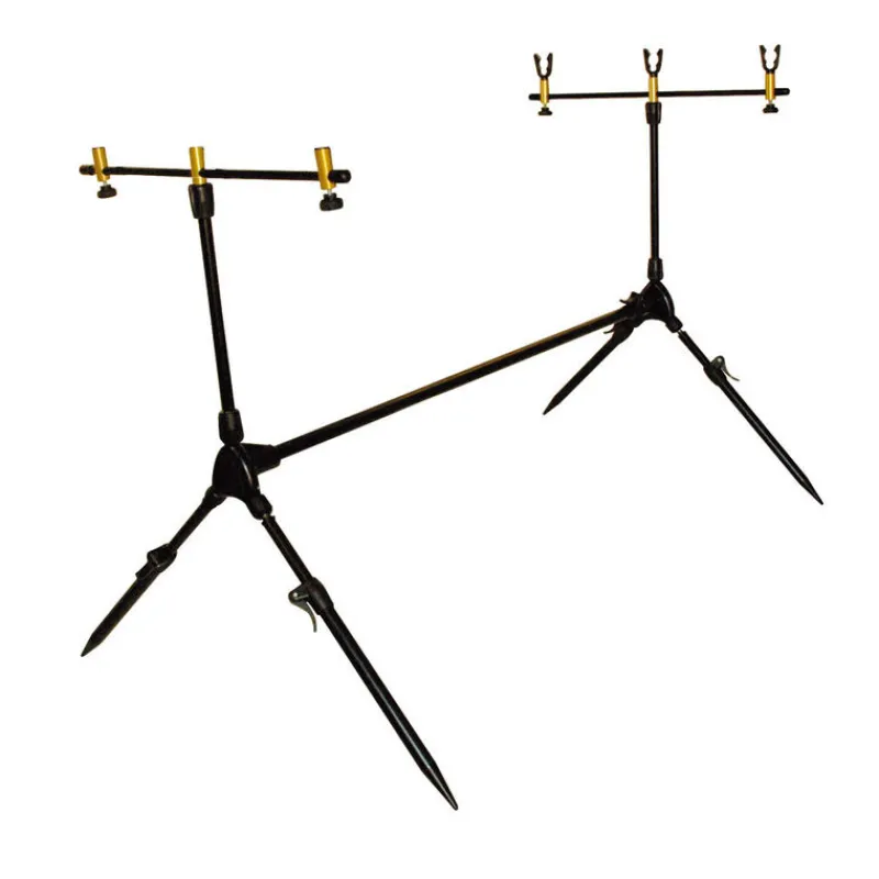 Ce rod pod 3 cannes est particulièrement compacte et très stable. Il s’adaptera très facilement à tous les types de terrains grâce à ses 4 pieds réglables. Son plus grand atout réside dans sa rapidité d’installation,car en moins de 2 minutes il sera prêt à recevoir vos cannes. De plus, il est tellement peu encombrant qu’on peut facilement le transporter dans un fourreau.