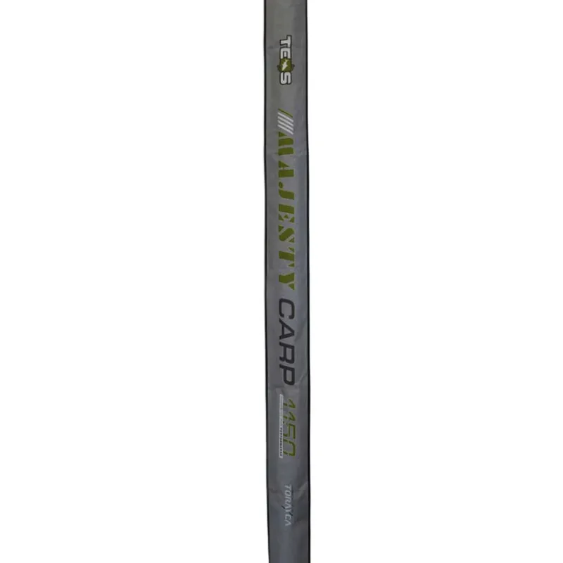 D’une longueur de 11.50m, la canne MAJESTY CARP 1150 a été développée pour les pêches fortes de carpes et autres gros poissons en carpodrome ou en public. Ce modèle très puissant vous permet un contrôle total des carpes lors des combats, tout en conservant un grand confort grâce à son poids et son équilibre maitrisés. Elle est équipée d’origine d’un kit de 2 éléments pré-percé avec une bague céramique pour installer un élastique intérieur avec une sortie latérale de type « strippa », ce qui vous permettra de gérer facilement la tension de l’élastique lors de la mise à l’épuisette de vos poissons. Un renfort en carbone a été rajouté au niveau de la zone de préhension du kit strippa, pour une solidité accrue et une meilleure durabilité. Comme tous les modèles de cannes TEOS destinés spécifiquement à la pêche de la carpe au coup, le diamètre intérieur de sortie du scion est de 5.5 mm, ce qui vous permettra d’installer facilement votre élastique sans avoir besoin de recouper le scion, et donc de conserver la longueur originelle de la canne.