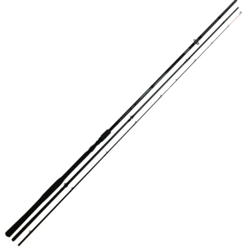 D’une longueur de 3.90m pour une puissance de 50-160g, la BLACKRIDER 390 XX POWER DISTANCE est sans conteste le modèle le plus puissant de la gamme BLACKRIDER ! Son énorme réserve de puissance la rend très polyvalente puisqu’elle va convenir à la fois pour les pêches lourdes en rivières et en fleuves avec de grosses cages feeder, pour les pêches de « spécimens » comme les grosses carpes, esturgeons et silures, ainsi que pour les pêches à très longue distance (>90m). Elle conviendra également parfaitement en guise de canne d’amorçage lorsqu’elle est équipée de son scion en 5 Oz. Son blank surpuissant combiné à des anneaux sudimensionnés (Anneau de départ en 30mm et de pointe en 6mm) permet de lancer avec précision et facilité des cages feeder jusqu’à 120g. La taille des anneaux permet l’utilisation de nylons de très fort diamètre. Malgré sa puissance démesurée, elle dispose d’une action progressive avec une pointe sensible qui lui permet de conserver une très bonne sensibilité pour la détection des touches difficiles. Elle est livrée avec 3 scions en carbone de puissances différentes : 3 Oz, 4 Oz et 5 Oz.