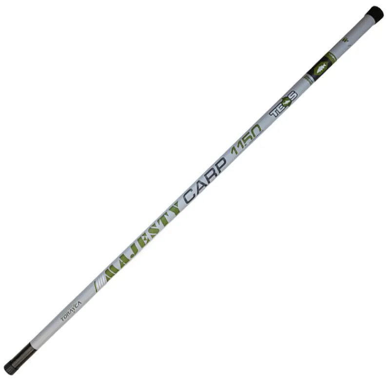 D’une longueur de 11.50m, la canne MAJESTY CARP 1150 a été développée pour les pêches fortes de carpes et autres gros poissons en carpodrome ou en public. Ce modèle très puissant vous permet un contrôle total des carpes lors des combats, tout en conservant un grand confort grâce à son poids et son équilibre maitrisés. Elle est équipée d’origine d’un kit de 2 éléments pré-percé avec une bague céramique pour installer un élastique intérieur avec une sortie latérale de type « strippa », ce qui vous permettra de gérer facilement la tension de l’élastique lors de la mise à l’épuisette de vos poissons. Un renfort en carbone a été rajouté au niveau de la zone de préhension du kit strippa, pour une solidité accrue et une meilleure durabilité. Comme tous les modèles de cannes TEOS destinés spécifiquement à la pêche de la carpe au coup, le diamètre intérieur de sortie du scion est de 5.5 mm, ce qui vous permettra d’installer facilement votre élastique sans avoir besoin de recouper le scion, et donc de conserver la longueur originelle de la canne.
