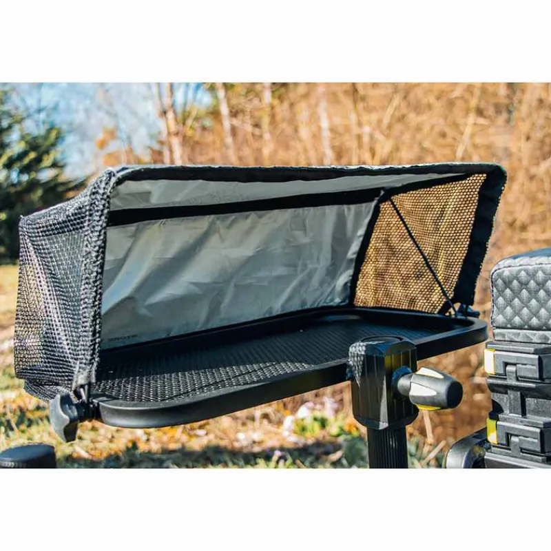 Grâce à leur store repliable intégré, ces dessertes assurent une protection efficace des appâts et du matériel contre la pluie, le soleil et les variations climatiques. À l’intérieur, une doublure isotherme contribue à préserver les esches de la chaleur, garantissant leur fraîcheur tout au long de la session.