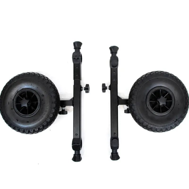 Ce kit chariot comprend donc les 2 supports munis d’une roue increvable et démontable rapidement.