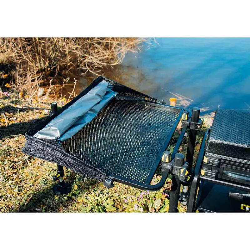 La desserte STORE TRAY XL est le modèle le plus grand de la gamme. Elle peut facilement accueillir vos appâts et vos différents matériels tels que vos boîtes à bas de ligne. Elle se fixe en 2 points sur la station et est livrée avec un pied support télescopique en diamètre 30 pour une stabilité optimale. Les 2 points de fixation sont coulissants et s’adaptent à toutes les stations du marché.